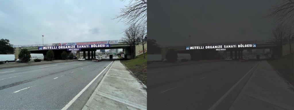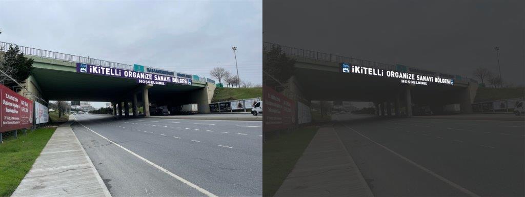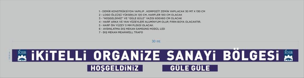 SATIN ALMANIN KONUSU: Tüm malzemeler istekliye ait olmak üzere, İkitelli Organize Sanayi Bölgesi girişindeki üst geçide çift yönlü ışıklı tabela yapılması işidir.